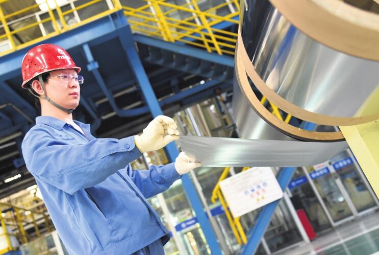 With a thickness of 0.02 millimeters, the superthin stainless steel foil produced by Taiyuan Iron and Steel is considered a highend product in the industry. WANG XUHONG / FOR CHINA DAILY