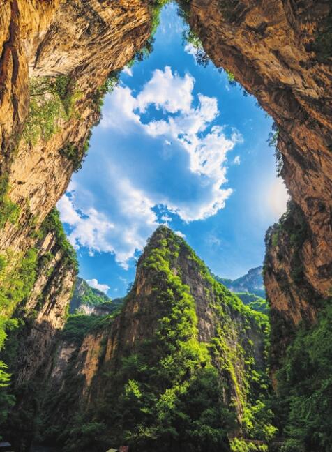 In addition to dozens of waterfalls and several karst caves, the most impressive sight is the area called Yixiantian-which literally means one-line sky-in the narrowest part of the valley. It is so called because the sky is narrowed to a line seen from the bottom of the valley.