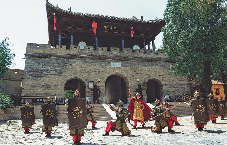 A live show is performed in front of Yanmen Pass to entertain tourists.