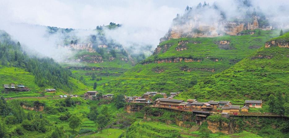 After a recent heavy rain, the renowned tourist attraction of Wanghuagou village in Ningwu county takes on the appearance of a fairyland shrouded in mist. Wanghuagou is also called the "hanging village". It is located on the Taihang Mountain cliffs, which stand about 2,300 meters above sea level. The residences are mostly two-story buildings with their fronts supported by exposed wooden columns. The houses are connected to the only road in the village, which is made of wooden planks and is less than 1 kilometer long. Wanghuagou was listed as nationally renowned historical and cultural village in 2010.