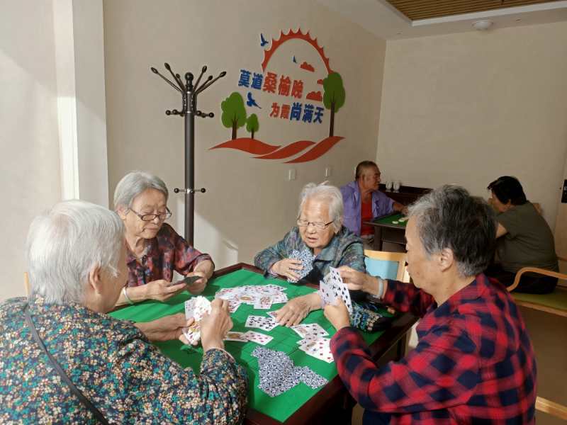 老人在棋牌室玩牌。高小明攝