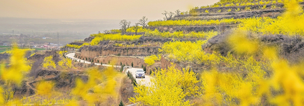 Aboriginal plants such as forsythia are used to preserve ecology in Shanxi, as they can protect soil from washed away by rains.HU BO / FOR CHINA DAILY