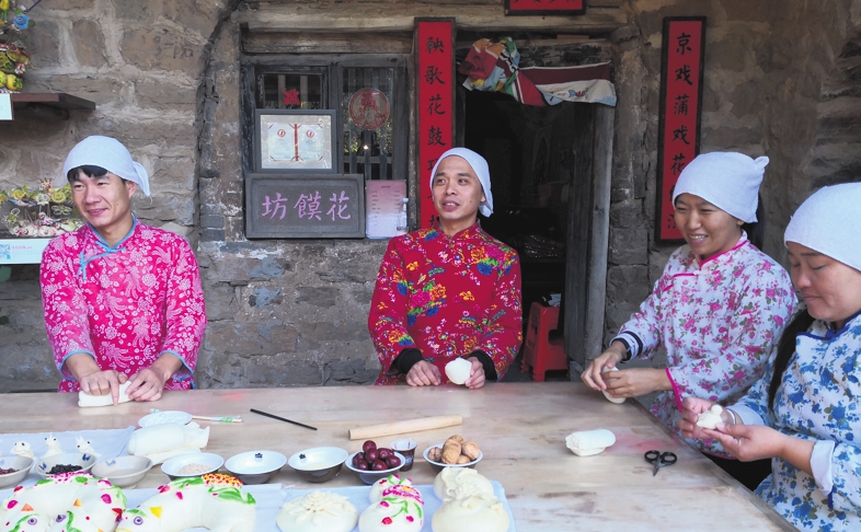 Handmade food like steamed bun and noodle is among the simple and yet unique treats that Ta’erpo villagers offer to tourists. GAO XINSHENG / FOR CHINA DAILY