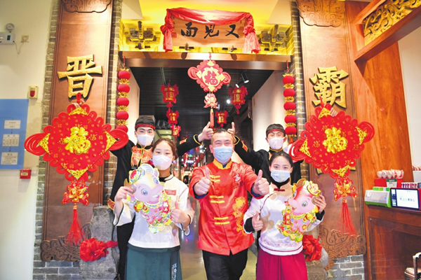 Staff members of Shanxi Guild, a restaurant chain in Taiyuan, are staying where they work to serve clients during Spring Festival.WU LIUHONG/FOR CHINA DAILY