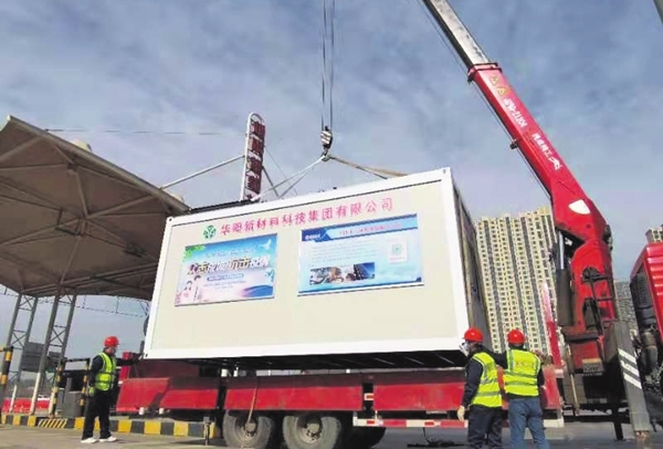 Huayang workers install a hightech cabin at one of the highway entrances near Taiyuan. GUO YANJIE / FOR CHINA DAILY
