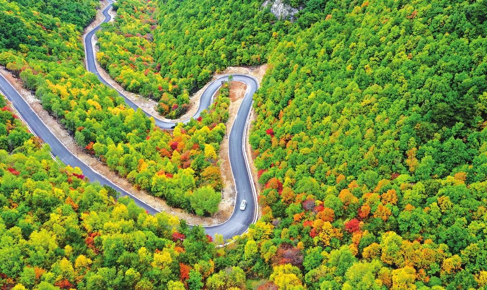 The Taihang No 1 Highway is built to offer convenience to visitors touring the Taihang Mountains, which stretches for more than 400 kilometers across the east of Shanxi. LI ZHAOMIN / FOR CHINA DAILY