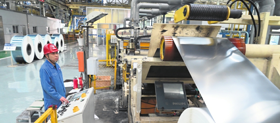 Super-thin steel foil rolls off the production line at Taiyuan Iron and Steel.SUN RONGXIANG/FOR CHINA DAILY