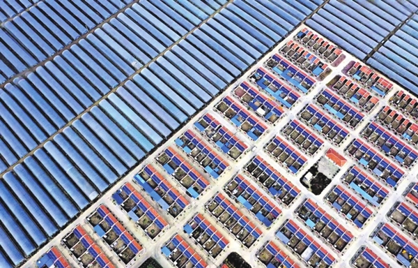 The solar farm in Xinyi township, Lishi district, in the city of Lyuliang includes photovoltaic panels installed on the roofs of farmhouses that can meet local demand and supply electricity to the rest of Shanxi province.