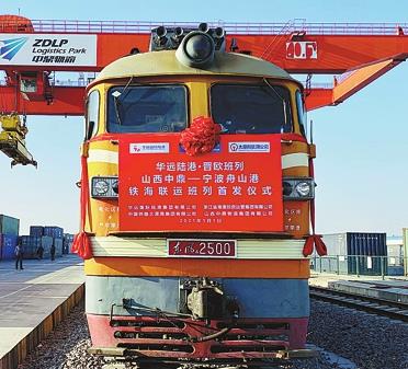 The first freight train for the shipment route from Shanxi to Ningbo Zhoushan Port begins operating on Jan 1. Wang Lei / For China Daily