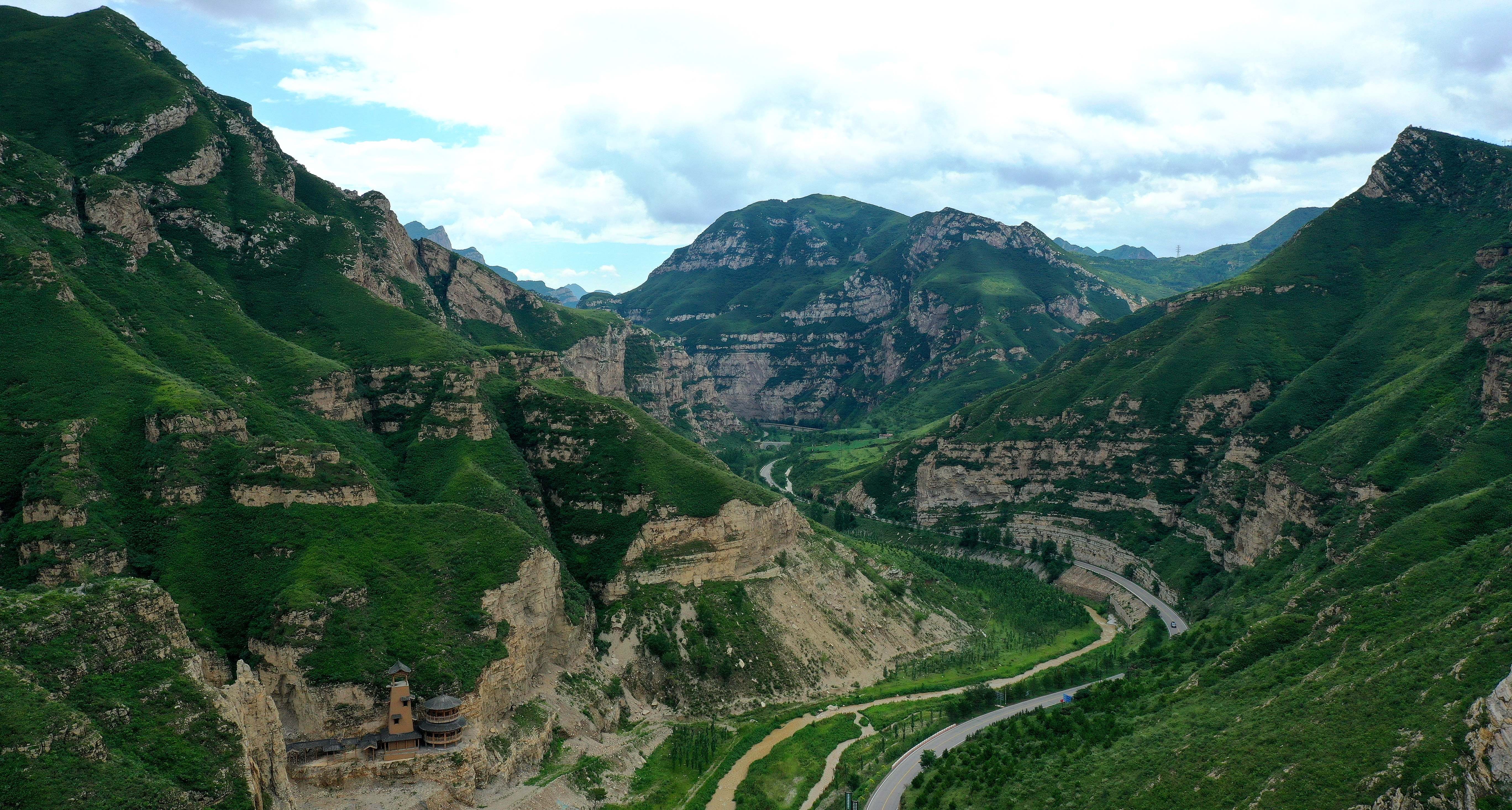 站在靈丘縣門頭峪水庫極目遠眺,山峰陡峭,植被茂盛,大地如織,唐河如帶!斑@一路上太美了,騎車都不覺得累!”來自河北的游客張先生由衷稱贊。