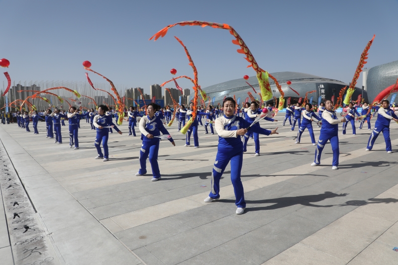 活動現場,大同市1000余名健身愛好者進行了健身氣功八段錦、幼兒籃球操、柔力球空竹龍表演、廣場舞、小學生跳繩團體操展示,以喜悅的心情迎接省運會到來,展示出三晉兒女擔當作為、奮發有為的新風貌。