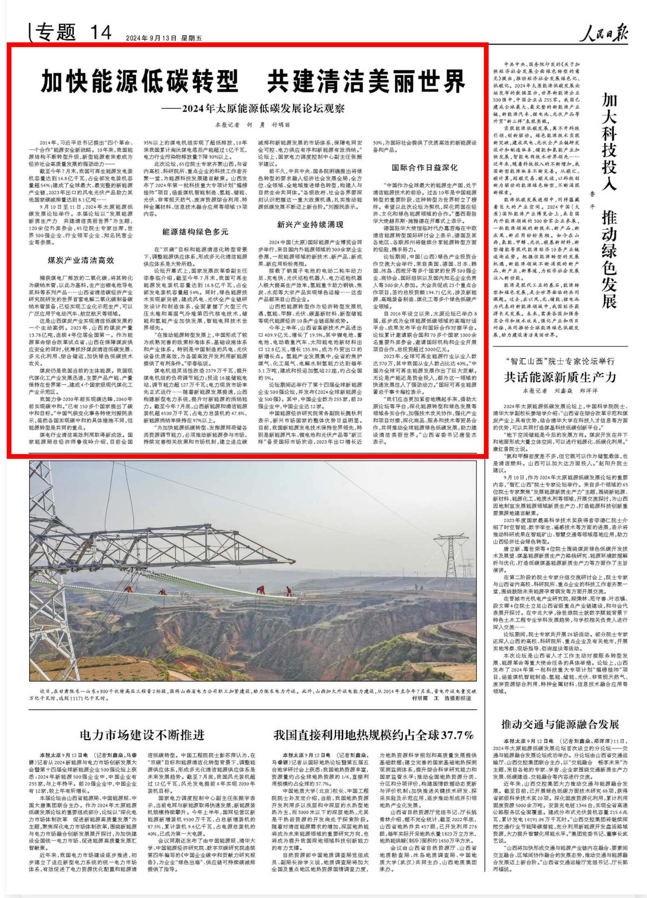 9月10日至11日,2024年太原能源低碳發展論壇舉行。本屆論壇以“發展能源新質生產力 共建清潔美麗世界”為主題,120余位外賓參會,65位院士專家出席,世界500強企業、行業領軍企業、知名民營企業等參展。