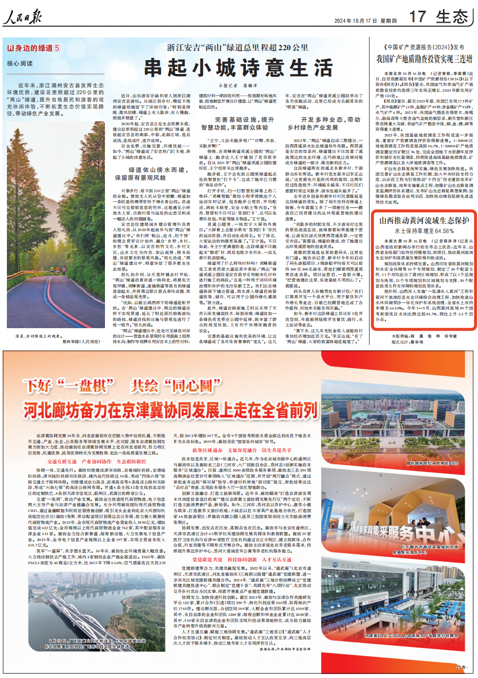 據介紹,山西深入實施“一泓清水入黃河”工程和黃河干流流經縣生態環境綜合治理工程,加快推進山水林田湖草沙一體化保護和系統治理,全省水土保持率增至64.58%。今年1—9月,山西黃河流域59個國考斷面優良水體比例達到84.7%,同比上升3.3個百分點。