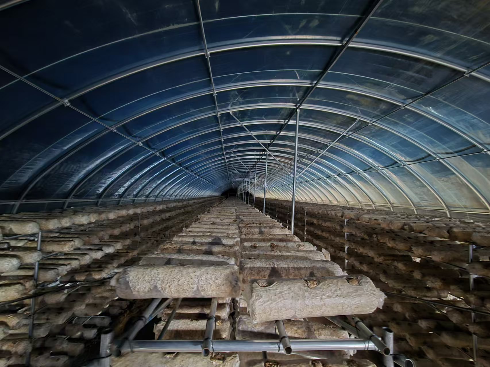 在玉泉鎮食用菌生產基地大棚內,空氣中彌漫著淡淡的菌香,工人們正忙碌地將一卷卷培育好的菌棒小心翼翼地往支架上放置,只見整齊劃一的架子上分層躺著一個個長約半米的香菇菌棒,大棚內的環境被嚴格控制,溫度、濕度、光照等條件都經過精確調控,以提供最適宜食用菌生長的環境。