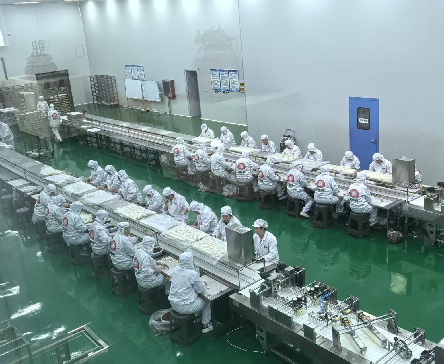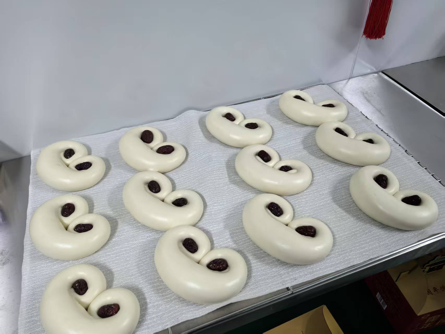 在霍嬤嬤食品科技發展有限公司年饃生產車間里,全自動化的和面、壓面、分劑生產設備高速運轉,年饃師傅們兩班輪作,抓緊捏制年饃,醒發房內數百屜半成品花饃、年饃整齊擺放,等待進入蒸籠,不遠處的蒸房內時不時飄散出陣陣麥香。新鮮出爐的花饃麥香四溢、直勾味蕾,輕輕一捏,暄軟和香甜直入心脾。