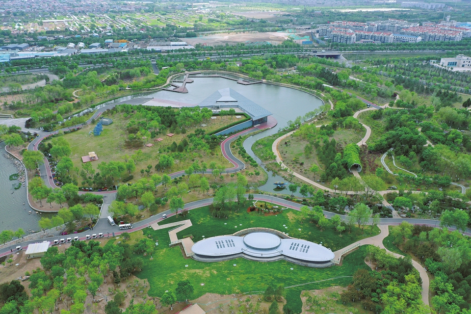 5月9日,初夏的太原植物園,別致的建筑融入優美的自然環境之中,成為眾多市民擁抱大自然的好去處。(記者阮洋攝)
