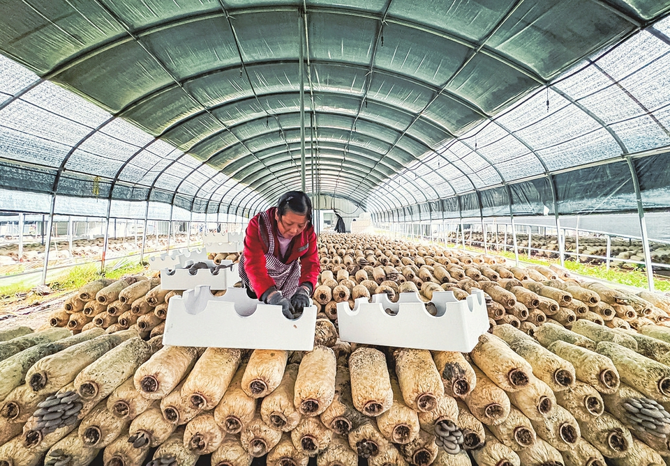10月9日,壺關縣百尺鎮炭場坪村恒誠菇業平菇大棚內,工人正將平菇裝箱待發。該村現已建成210個平菇大棚,通過“村集體+公司+農戶”模式,帶動60余名村民就業,人均年收入超2萬元。(司敏 攝)