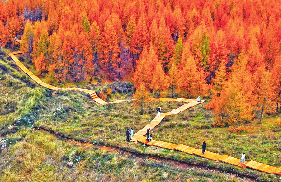 近日,渾源“探岳之旅”主題旅游線路上,漫山金黃的落葉松在薄霧中若隱若現,宛如一幅色彩斑斕的畫。這條路約80公里,串聯起二嶺村烽火觀景臺、東葫蘆頭棧道等景點,將恒山風光與長城文化相融,讓游客沉浸式感受秋日浪漫。(劉通 張占兵攝)